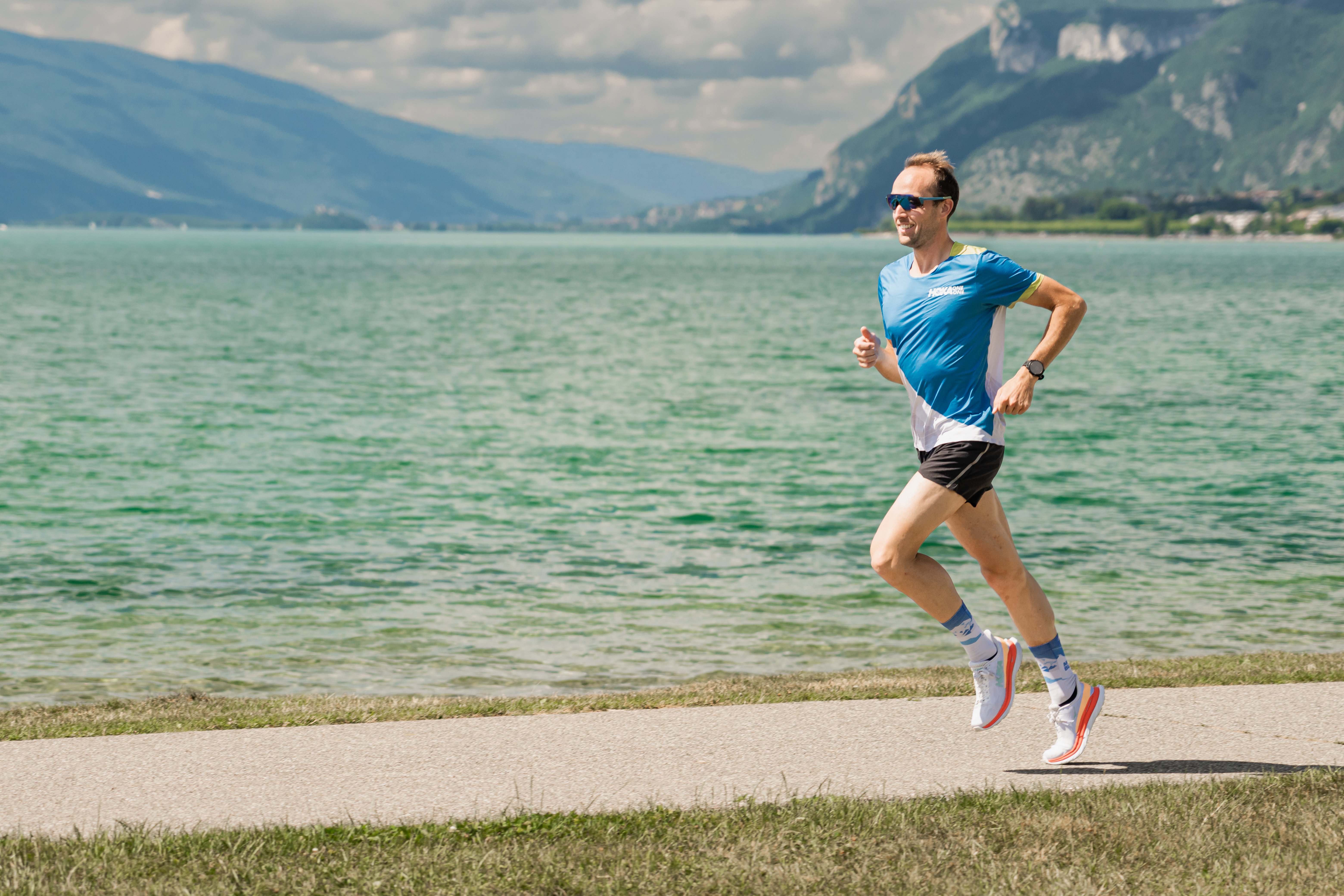 Con ENGO, esta configuración de pantalla primaria/secundaria permite a los atletas acceder a las métricas de rendimiento más importantes para el entrenamiento o la competición al instante, de un vistazo, sin interrumpir el paso ni mirar hacia abajo.